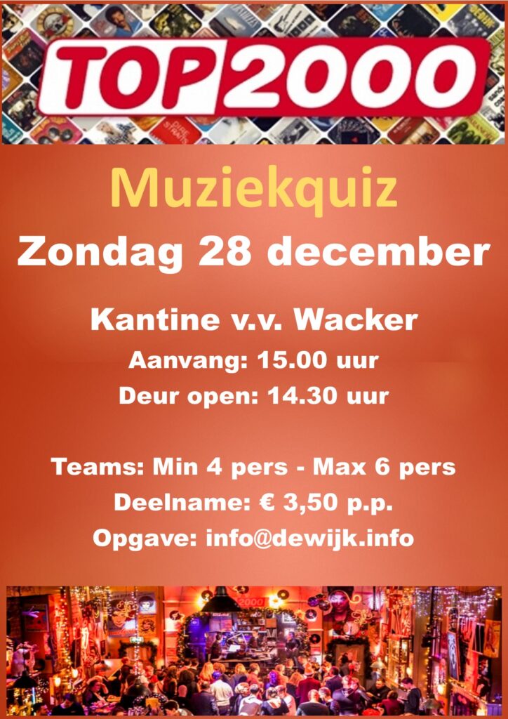 Op zondag 28 december verandert de kantine van v.v. Wacker in een muzikaal strijdtoneel tijdens de Top 2000 Quiz.