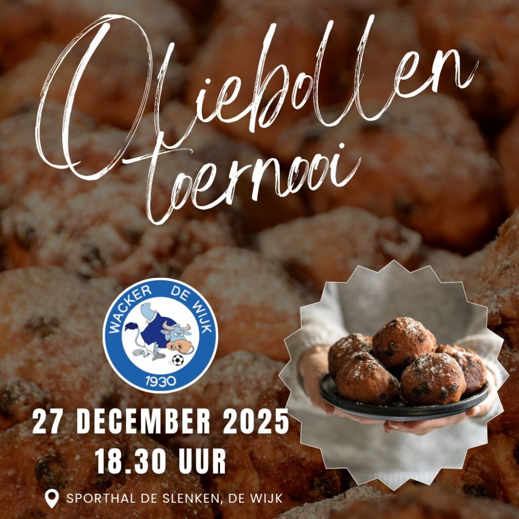 Zet het maar weer in je agenda, want na jarenlange afwezigheid is het dit jaar weer tijd voor het alom bekende oliebollentoernooi. Dit traditioneel evenement met boarding wordt gehouden op zaterdag 27 december in sporthal De Slenken in De Wijk en is bedoeld voor senioren van Wacker. Voor de senioren is de planning dat de deelnemers uiterlijk om 18:15 uur worden verwacht in de sporthal in verband met de indeling van de teams, zodat de eerste wedstrijd ook om 18:30 kan beginnen. Je kan het publiek nou eenmaal niet te lang laten wachten. Tijdens het toernooi kan men uiteraard genieten van versgebakken oliebollen.