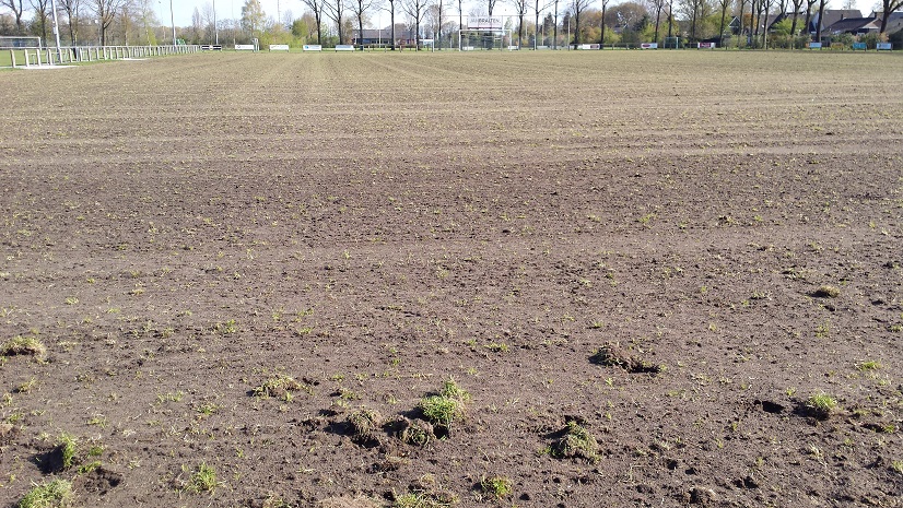 Het hoofdveld is geegaliseerd en opnieuw ingezaaid maar…………