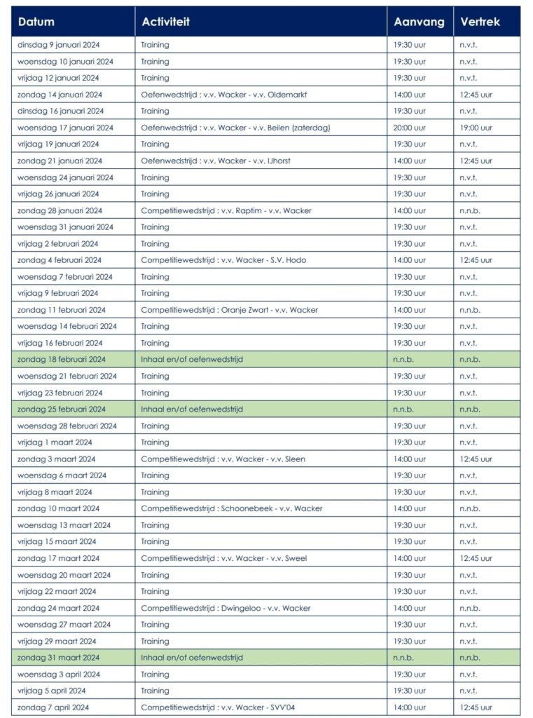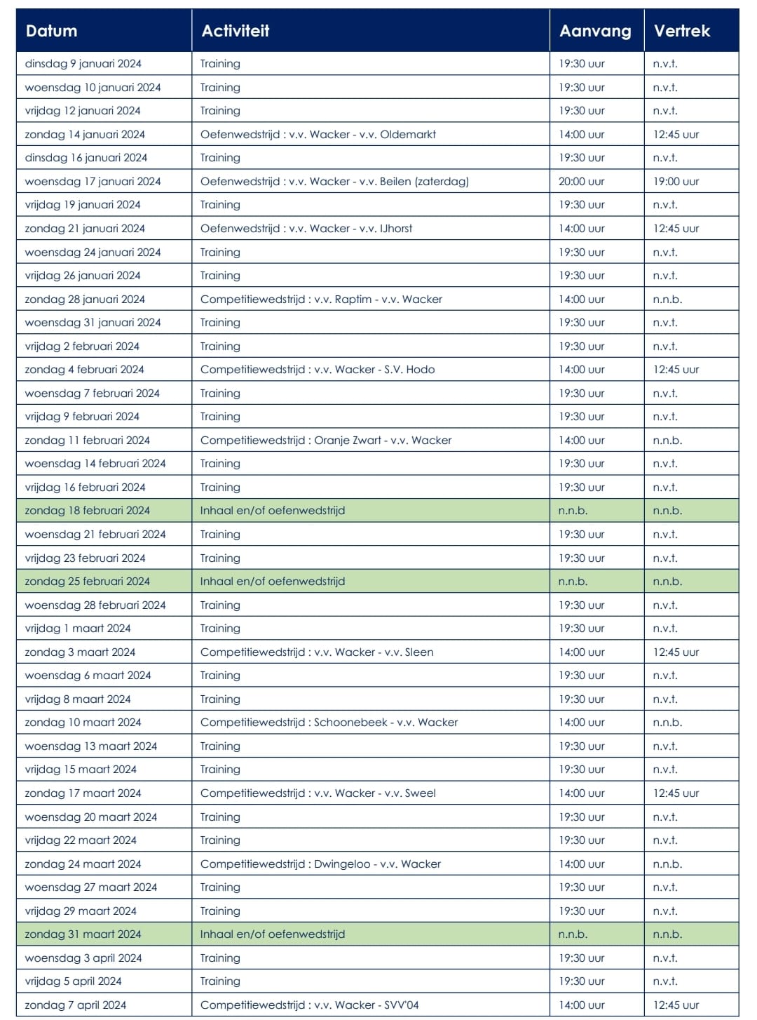We gaan er zo makkelijk vanuit dat, als je zaterdag of zondag naar het voetbalveld gaat, er een prachtig veld voor je klaar ligt, met geplaatste doelen, met belijning, met ballen, met een scheidsrechter, met een kantine die geopend is, met prima kleedkamers enz. enz. enz. We realiseren ons onvoldoende dat al datgene hierboven genoemd , niet vanzelf tot stand komt. Daar zijn mensen (vrijwilligers) voor nodig en niet een paar!!!Daar zijn (zelfs dagelijks) mensen voor in touw!!! Natuurlijk is er een bestuur dat de touwtjes in handen heeft, , doch daarnaast zijn er talloze commissies en leiders die “het apparaat “ draaiende houden. En dat alles om er maar voor te zorgen, dat onze jeugd later kan zeggen: Ik heb een mooie voetbaljeugd bij Wacker gehad”!!!