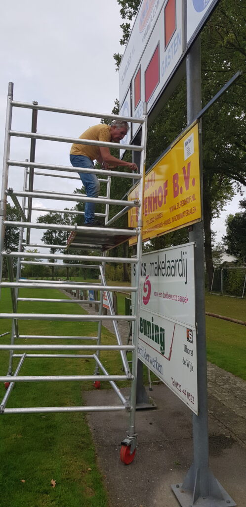 Nu de competitie is gestart moet het scorebord bij Wacker er ook goed uitzien. De vrijwilligers van Wacker zijn weer druk bezig om alles tot in de puntjes goed te krijgen wat de aanblik van de accommodatie zeer ten goede komt; zo ook het scorebord. De voorbereiding voor het aanbrengen van de borden voor het sponsorcollectief vv Wacker die hierop straks te zien zal zijn, is in volle gang gezet.