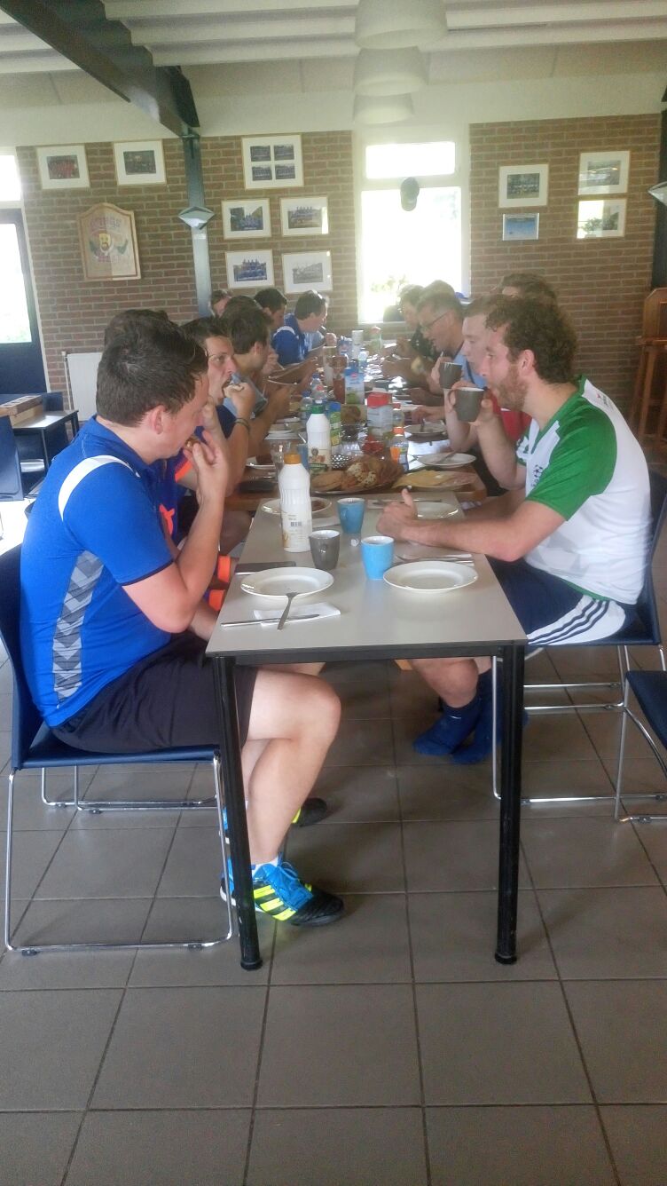 Op een eerste training moet er goed gegeten (en gedronken) worden.