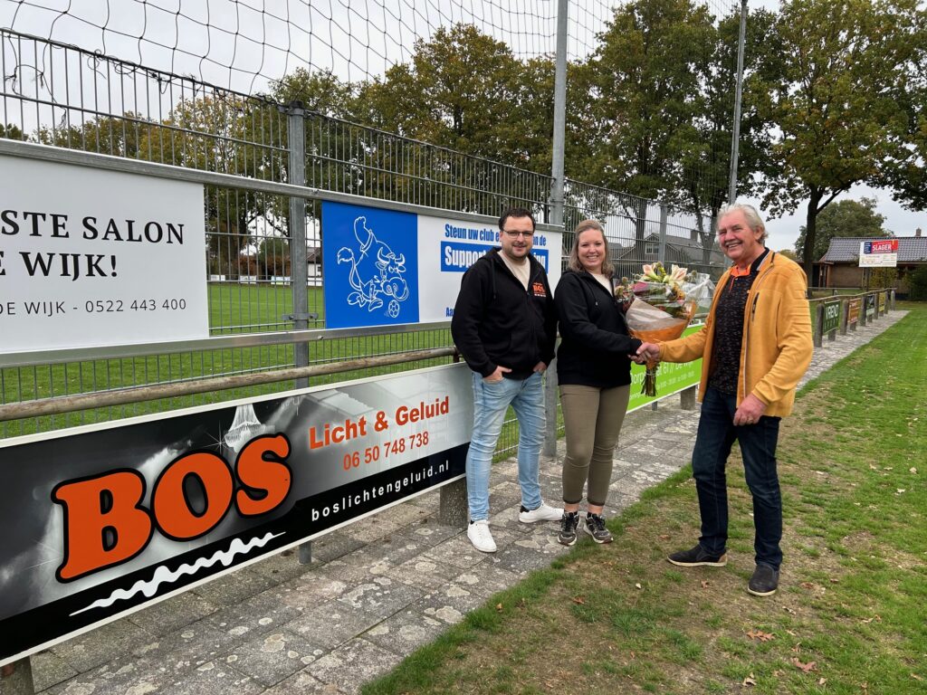 Bos Licht en Geluid uit Koekange werd afgelopen zondag in het zonnetje gezet als sponsor van v.v. Wacker. Als blijk van waardering ontvingen Gerjan Bos en zijn partner een mooie bos bloemen van Willem Dekker, namens de sponsorcommissie.