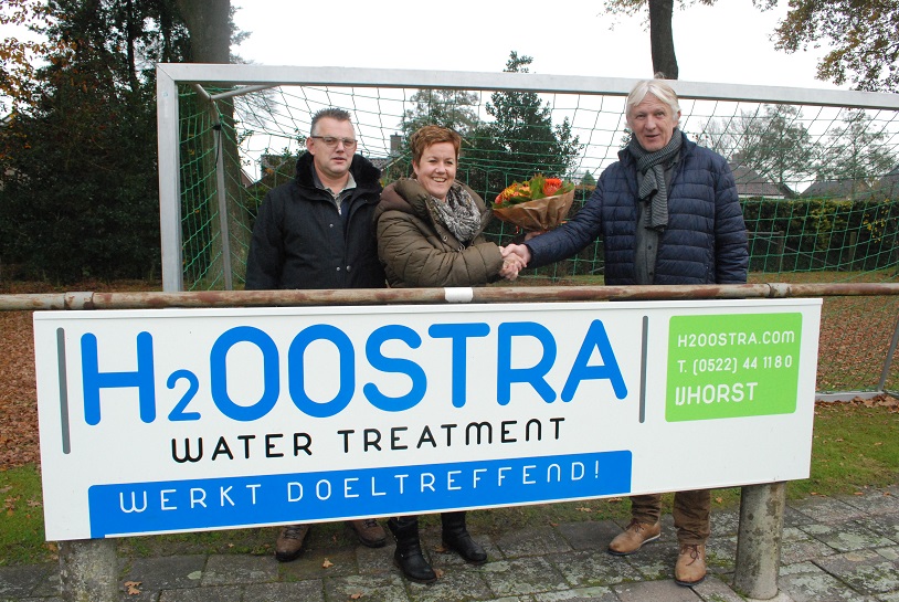 H2Oostra (1)_site814VV Wacker heeft voor aanvang van de wedstrijd Wacker – Trinitas, H2OOSTRA als nieuwe bordsponsor mogen verwelkomen. Dit bedrijf uit IJhorst is gespecialiseerd in drinkwaterbehandeling in de agrarische sector. In tegenstelling tot conventionele waterbehandelingsproducten maakt H2OOSTRA het water in de waterleidingen zacht en wordt de biofilm, mangaan,- ijzer,- en kalkafzetting losgeweekt en dat alles zonder sterke chemicaliën. H2OOSTRA reinigt het water en de uitrusting volledig zodat er geen besmettingsgevaar meer bestaat. Daardoor hoeven biociden zoals chloren en zuren minder bacteriën etc. te doden. Dit betekent dat aanzienlijk minder chemicaliën, waardoor er minder tijd nodig is voor het onderhoud van uw waternetwerksysteem. Eigenaar Cor Oostra en zijn vrouw werden door de sponsorcommissie hartelijk bedankt met een mooie bos bloemen. Foto: Benny Spin