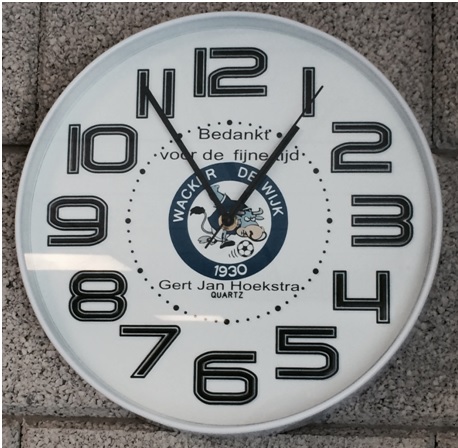 Voorzitter Willem Stadman overhandigde Hoekstra een speciaal voor hem gemaakte en ingelijst Wacker-shirt en de trainer zelf verraste zijn staf, spelers en bestuur door als aandenken aan iedereen een klok kado te doen, met het Wacker-logo en zijn welgemeend “dankjewel” erin. Afscheid met een lach en een traan en de eerste afspraak voor een reünie is inmiddels al gemaakt. Dat Wacker dit prachtige mens en deze top-trainer veel dank verschuldigd is, mag duidelijk zijn. Heel Wacker wenst Gert Jan Hoekstra dan ook alle geluk en succes van de wereld bij VV Ruinerwold!