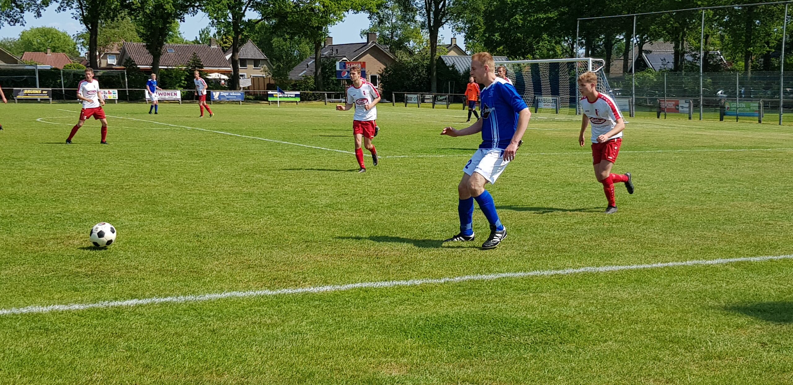 Meteen na de rust haalde RENADO alles uit de kast. Zij werden duidelijk sterker en daar lag voor WACKER de kans om met snelle aanvallen de 1 – 0 uit te breiden. De mooiste kansen werden gemist, doch in de 67e minuut was het toch Joris Brouwer die de verlossende 2 – 0 scoorde. Althans, dat dachten we! Maar het zeer sportief spelende RENADO trapte het gaspedaal nog dieper in en het was aan doelman Daan Dekker, die uitgroeide tot “man of the match”, te danken, dat WACKER de 2 – 0 kon handhaven. Sterker nog, onze blauwhemden wisten met een sublieme goal van Dennis Westerbeek (hij schoot de bal, van ongeveer 40 meter afstand, schitterend in het Friese doel) de beslissende 3 – 0 op het scorebord te brengen!