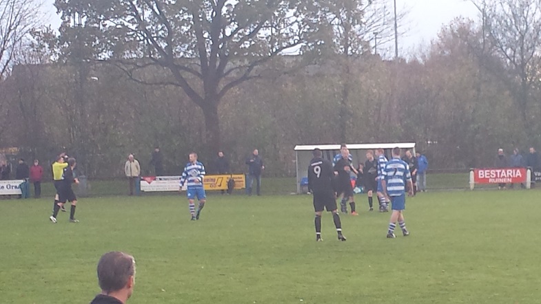 En nadat er een minuut stilte in acht was genomen voor de slachtoffers van de dramatische gebeurtenissen van de afgelopen week, kon er op een redelijk, doch wel erg glad veld, begonnen worden, onder het toeziend oog van burgemeester De Groot van De Wolden