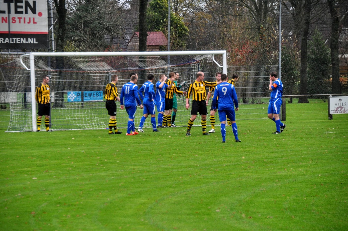 Storm, regen, kou, allemaal aanwezig!! De wedstrijd tegen GOMOS (uit Norg) moest toch doorgaan, want het veld was, volgens de goed fluitende scheidsrechter Richard Smits uit Musselkanaal, in uitstekende conditie. De letters GOMOS betekenen: Goede Oefening Maken Ons Sterk.Nou, dat ze in Norg goed geoefend hadden , bleek wel uit het spel van de geelzwarten uit Norg.