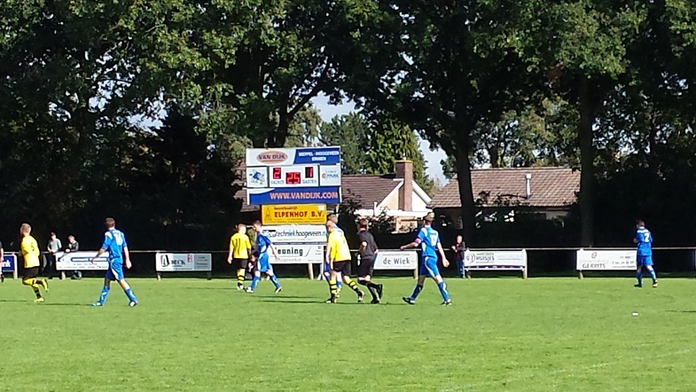 Nee dus, want trainer Los van Steenwijker Boys had kennelijk een hartig woordje gesproken in de kleedkamer, want men gooide er nog maar een schepje bovenop. En in de 54e minuut lag de gelijkmaker al in het netje achter keeper Bram. De kwaliteit van de geelzwarten uit Steenwijk kwam steeds meer boven drijven en toen ook scheidsrechter Frankena uit Leeuwarden (die overigens een goede wedstrijd floot) een overtredeing met een penalty bestrafte, zat de wedstrijd eigenlijk op slot.