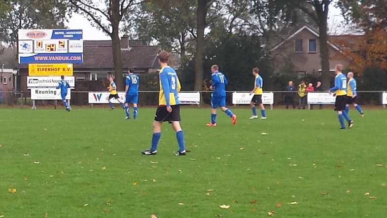 Na de rust ging de beuk er bij Wacker flink in, het werd pompen of verzuipen, doch de ruimte die er daardoor ontstond  was een kolfje naar de hand van het leep spelende Trinitas. 10 minuten voor het einde zag , de ingevallen Joost van der Weide, toch  kans om met een prima kopbal, de aansluitingstreffer te scoren. “Alles of niks”, werd er vanaf de kant geroepen. Het werd dus….niks, 20151108_142938_site785want Trinitas kreeg nog meer ruimte en wist daar op handige wijze  van te profiteren door met een derde goal deze wedstrijd op slot te gooien. Verslagen verlieten onze blauwwitte mannen het veld en onder verwijzing naar de eerste zin van dit verslag zeg ik: “Kom op mannen, er zijn nog  17 (!!!) wedstrijden te spelen, dat zouden 51 punten kunnen  zijn  en het moet toch al raar lopen als daar niet aantal voor Wacker bij zitten!.
