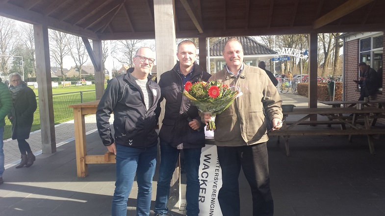 Vooraf aan deze wedstrijd nam de vereniging WACKER afscheid van een van die mannen waar een vereniging niet zonder kan: Vrijwilliger HARJO VAN HOLTEN. Door verhuizing naar Emmen heeft Harjo zijn vele werkzaamheden (en vooral zijn scheidsrechterzaken) bij Wacker moeten beëindigen. Voorzitter Franz Zinger sprak Harjo toe en bedankte hem voor het vele, vele werk wat hij voor de vereniging heeft gedaan. Ook de diverse elftallen lieten zich niet onbetuigd en boden Harjo de nodige cadeau’s aan.