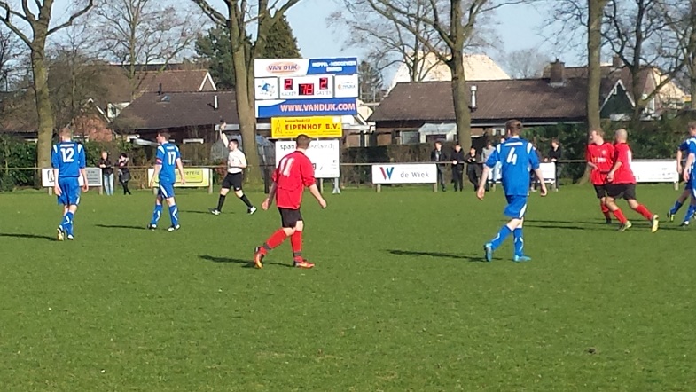En vanaf de aftrap gingen ze er met meer dan 100% tegenaan, terwijl Wacker iets uitstraalde van: “Het komt allemaal wel goed”! Zandhuizen nam reeds na 6 minuten de leiding, toen een hoge bal binnen de 5 meterlijn, volkomen verkeerd werd beoordeeld door de verdediging van Wacker en zo stond het 1 – 0 voor de gasten en toen de keihard knokkende roodhemden uit Zandhuizen in de tiende minuut met een mooi schot op 2 – 0 kwamen, zag het er voor de Wijkers niet al te best uit. Hoewel Wacker wel steeds iets beter ging spelen, bleef men met de rust tegen een 2 – 0 achterstand aankijken.